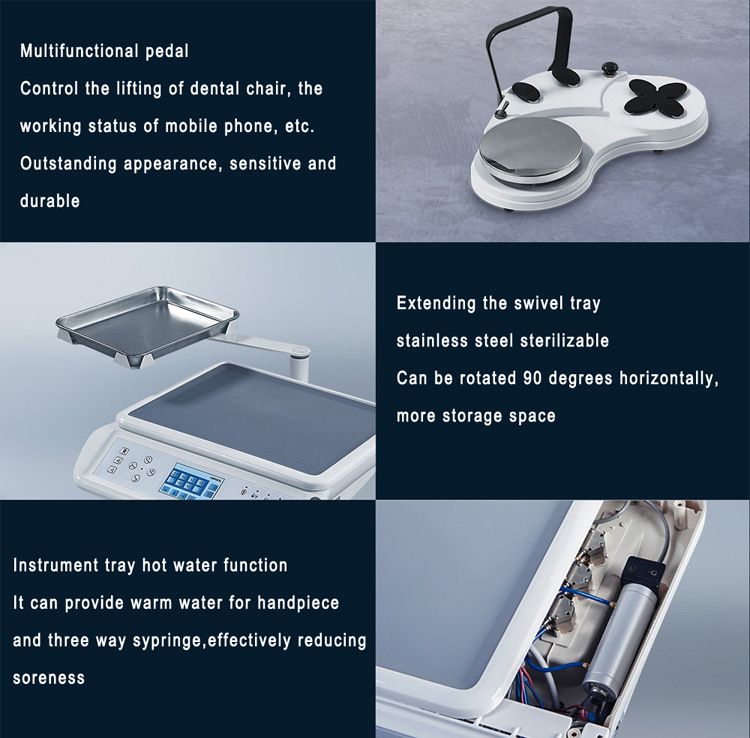 11.Instrument tray delivery system heating water function which provide warm water for handpiece and three way syringe, double filtration for water purify system.